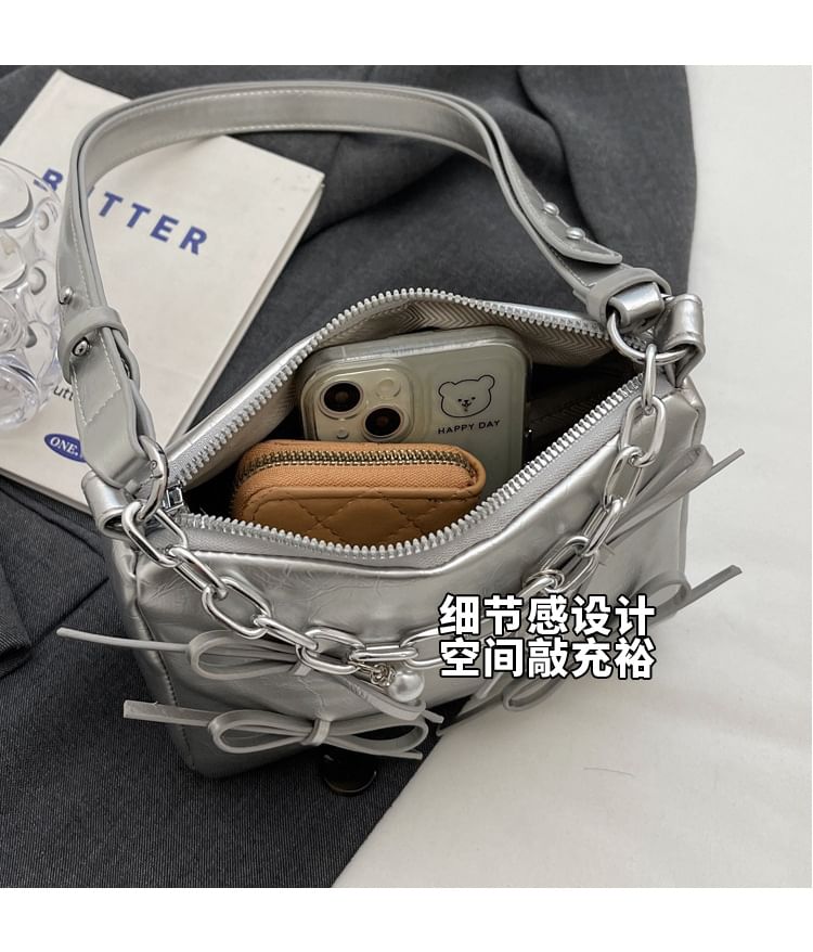 Umhängetasche aus Kunstleder mit Schleife und Kettendetail