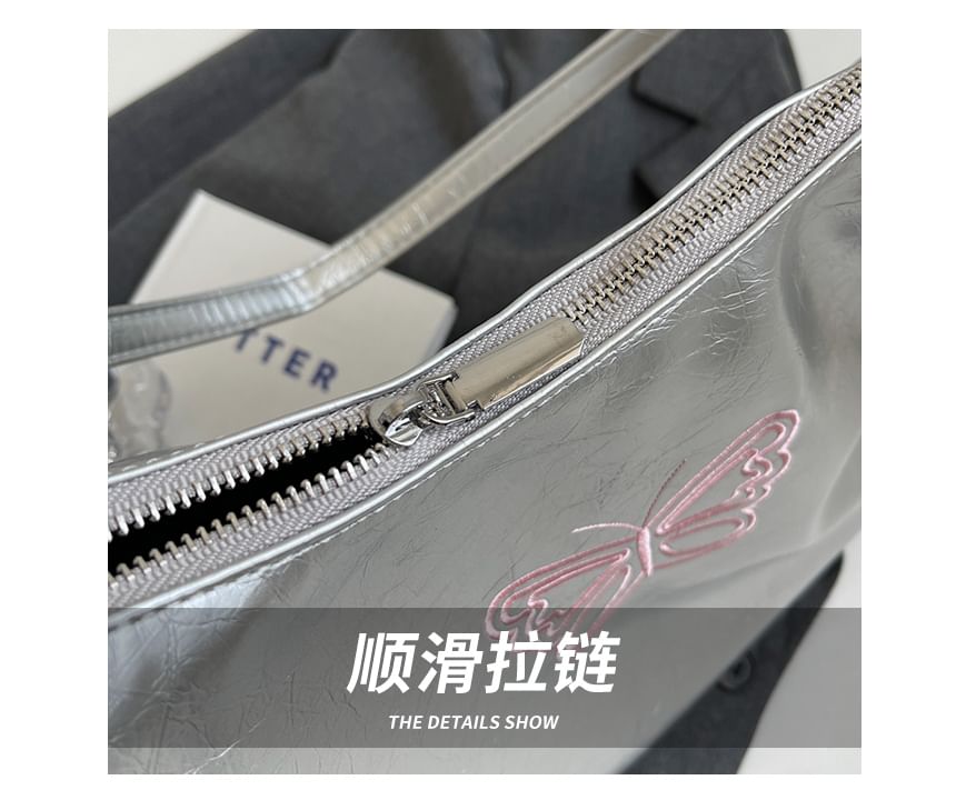 Umhängetasche aus Kunstleder mit Schmetterlingsstickerei