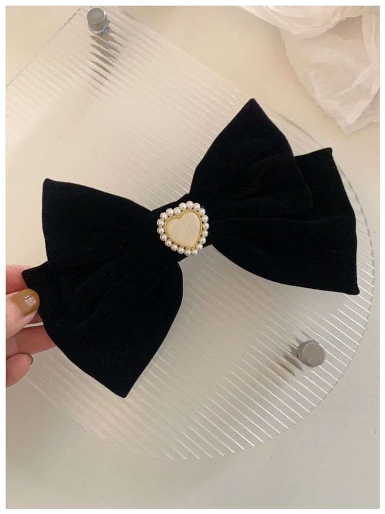Haarspange mit Herz-Schleife und Kunstperlen
