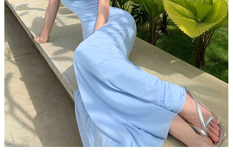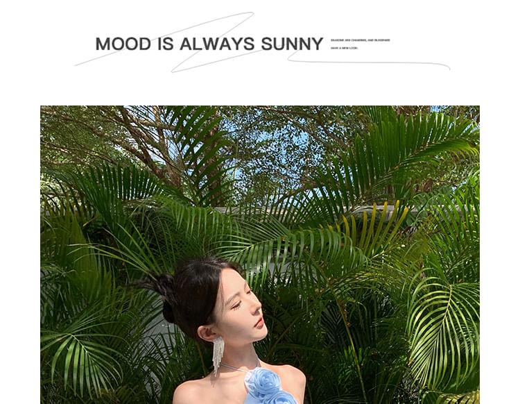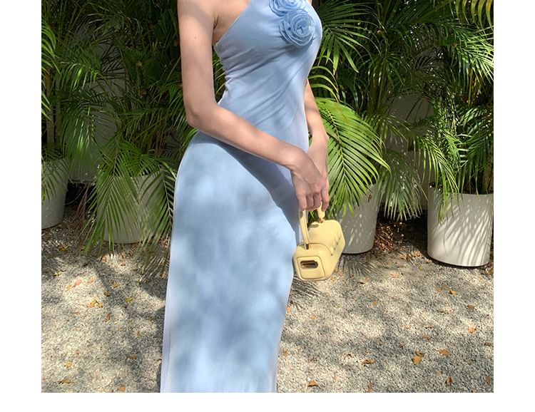 Neckholder-Maxi-Etuikleid mit Blumenakzent