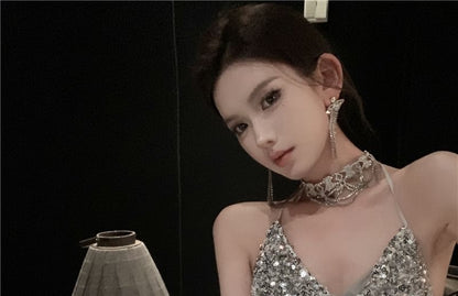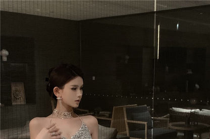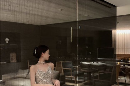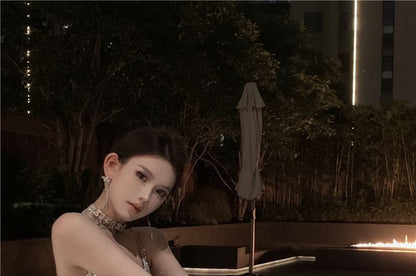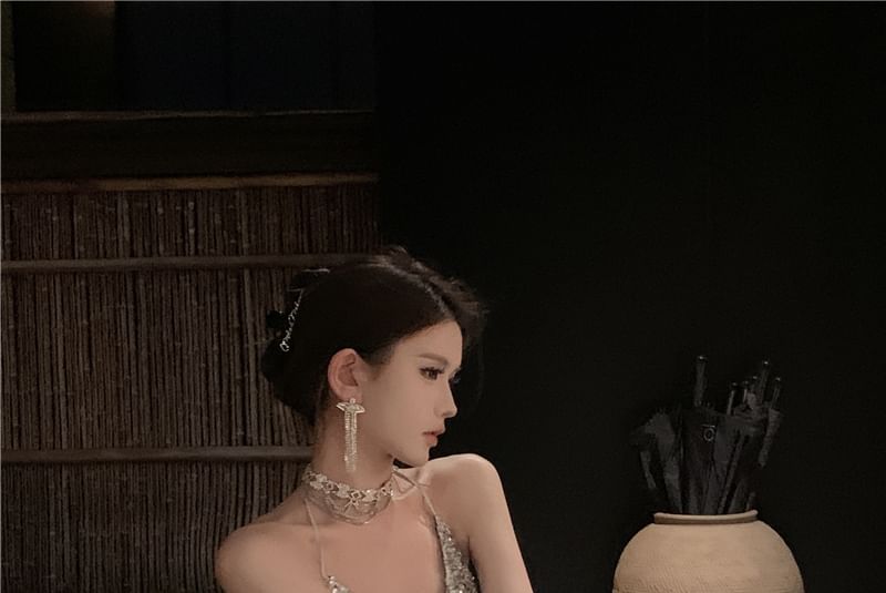 Neckholder-Cocktailkleid mit Pailletten im Mini-Etui-Stil