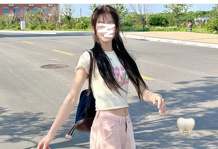 Jeans mit mittelhohem Bund und weitem Bein und Taschendetail