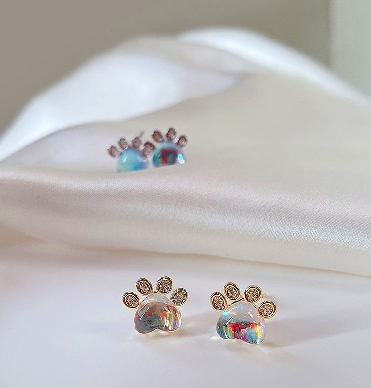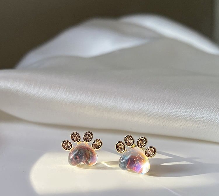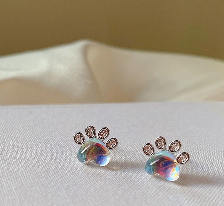 Ohrstecker mit Pfoten-Strass und Edelstein