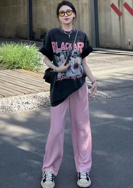 Schlichte Anzughose mit mittelhohem Bund und weitem Bein