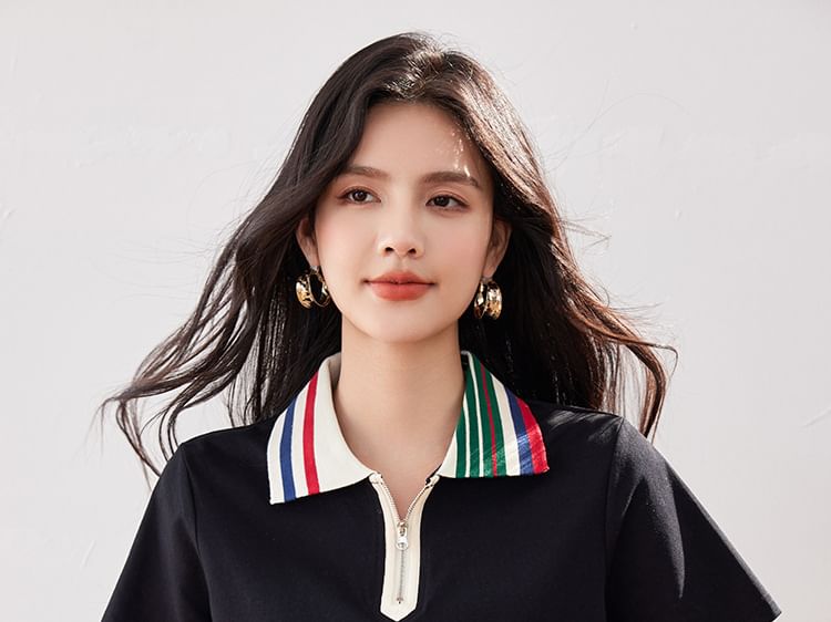 Kurzärmliges Poloshirt mit gestreiftem Besatz