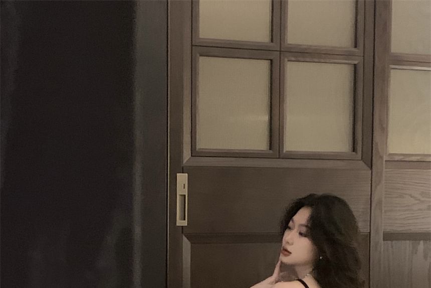 The Spaghettiträger-Midi-Etuikleid aus Samt mit Perlenbesatz und Schlitz was built with people like you in mind. Something to keep you happy. Every. Single. Day.