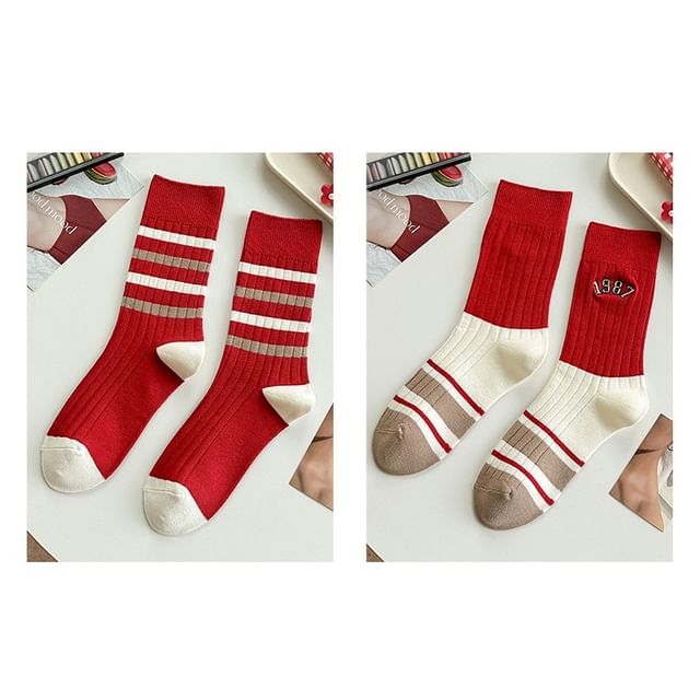Gestreifte Socken / Socken mit Buchstabenstickerei / Set