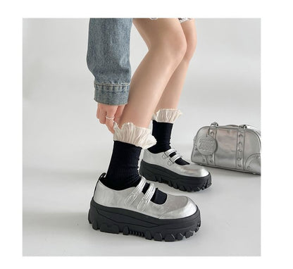 Platform Adhesive Strap Faux Leather Mary Jane Shoes