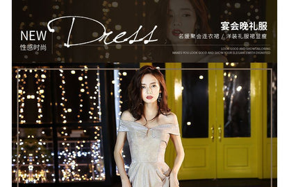 Off Shoulder Glitter A-Line Cocktail Dress / Evening Gown