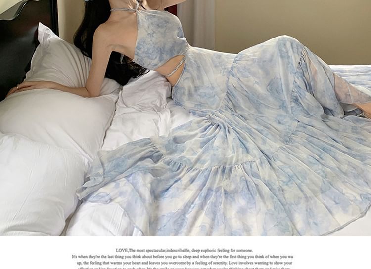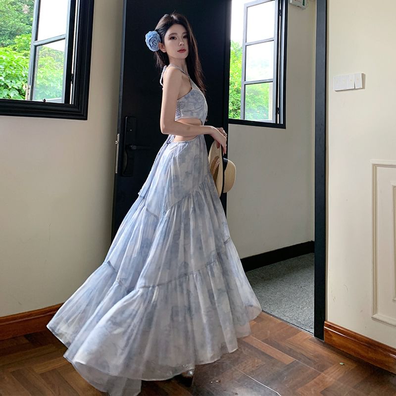 Floral Maxi Cutout A-Line Halter Dress FashionChic