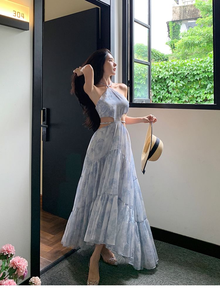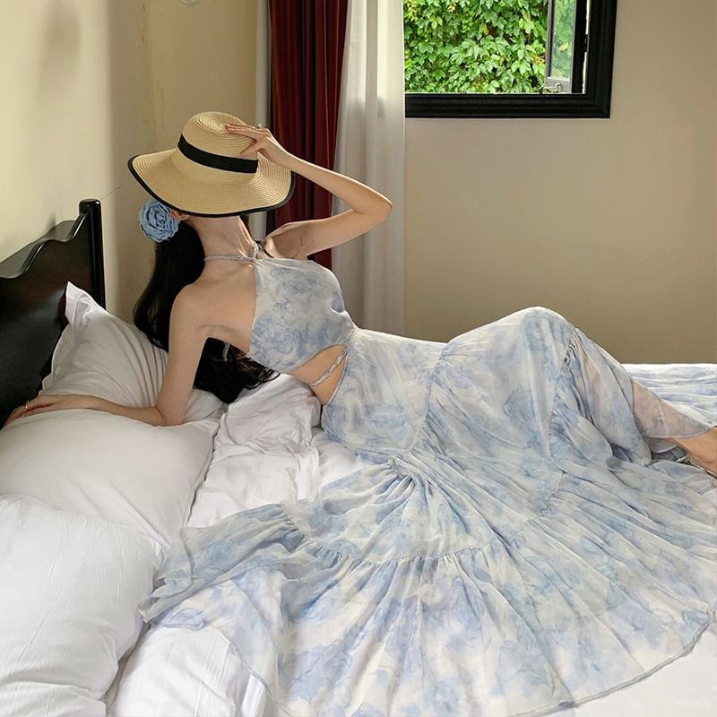 Imagine if you could be satisfied and content with your purchase. That can very much be your reality with the Floral Maxi Cutout A-Line Halter Dress.