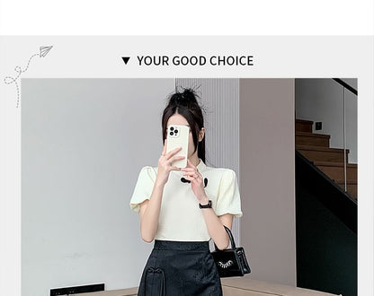 High Waist Floral Jacquard Frog Button Slit Midi A-Line Skirt
