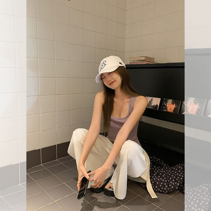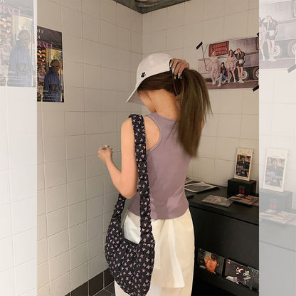Neck Fit Lettering Slim Scoop Top Tank FashionChic