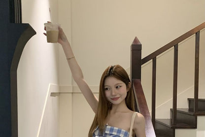 Plaid Asymmetrical Tube Top