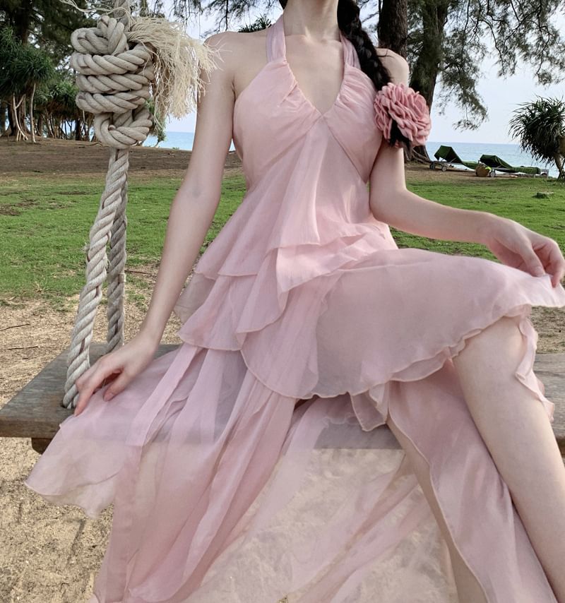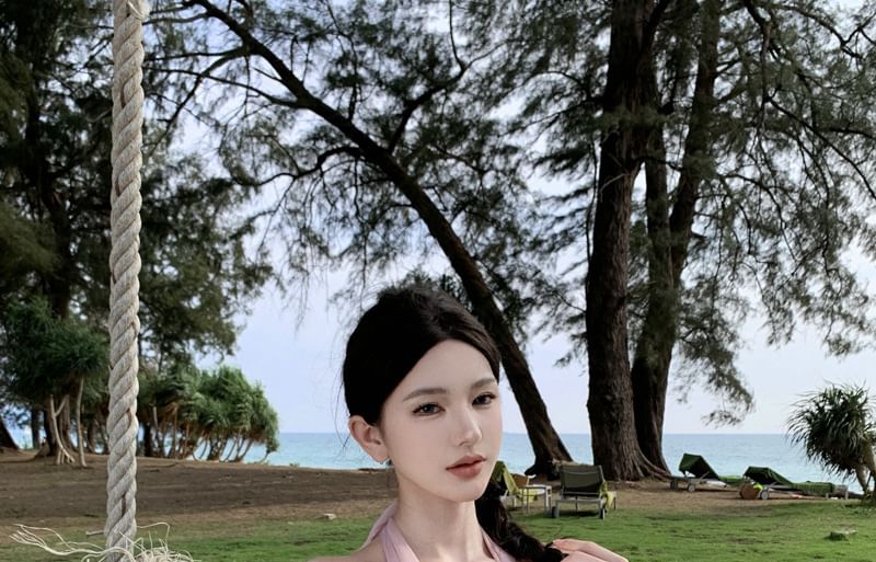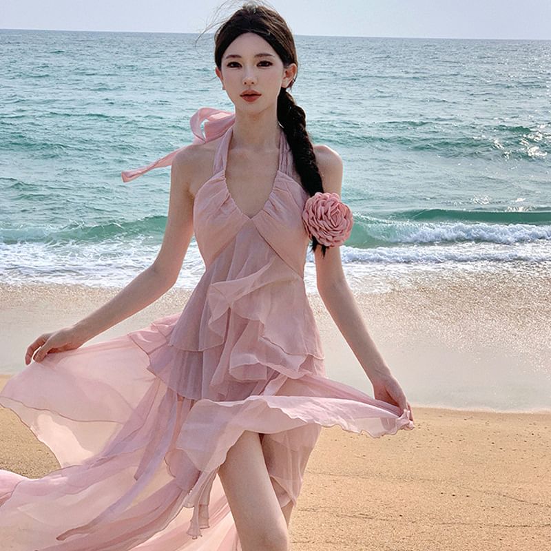 The Plain Halter Rise Back Set: Layered Top Open Skirt A-Line Asymmetrical High + Ruffle V-Neck destined to impress, and priced at only $48.99, for a limited time.