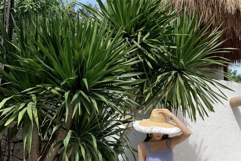 The Sun Ruffle Strap Dress Striped Neck Maxi Square Spaghetti is far and away, one of our most popular items. People can't seem to get enough of it.