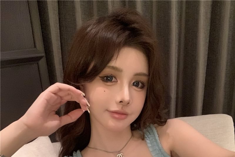 Top Rhinestone Square Slim Neck Tank Frill Trim Fit