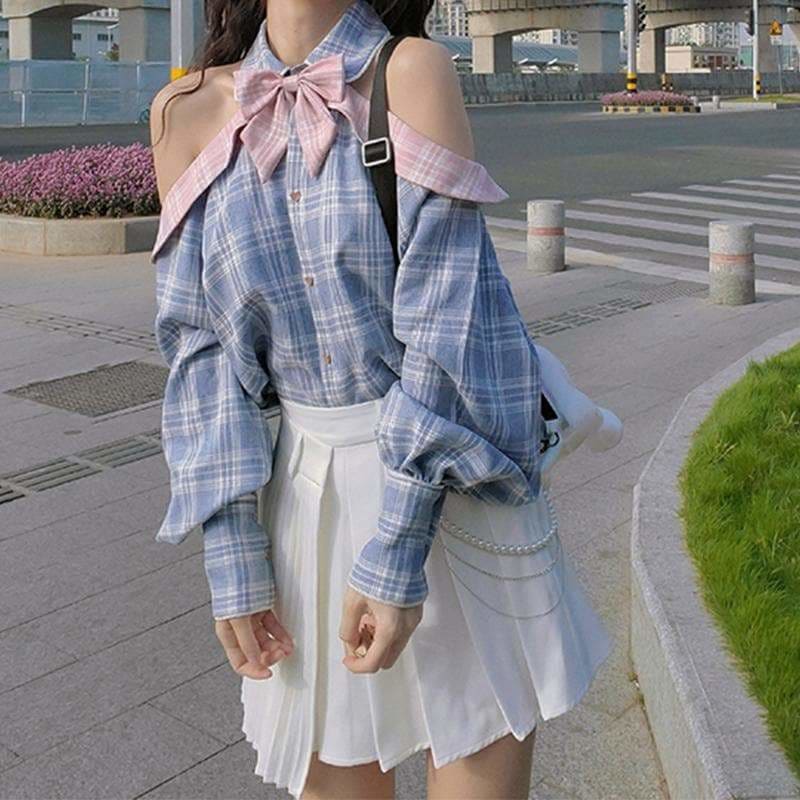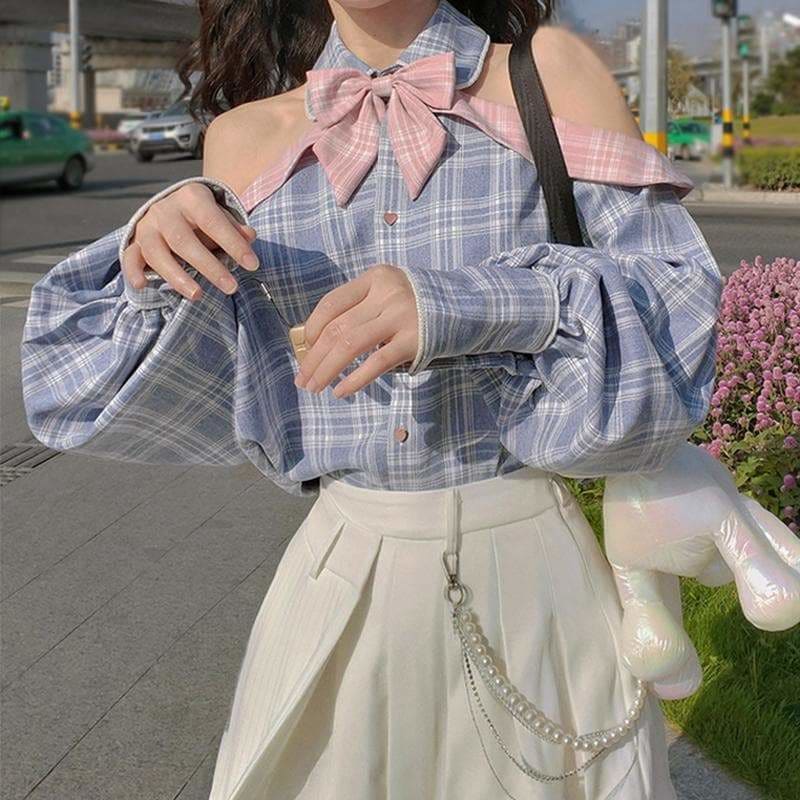 The Blue Plaid Off The Shoulder Bow Blouse SP15727 was built with people like you in mind. Something to keep you happy. Every. Single. Day.