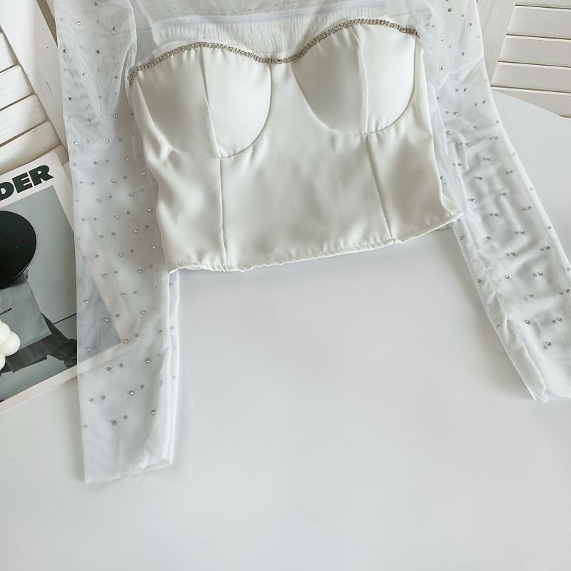Imagine if you could be satisfied and content with your purchase. That can very much be your reality with the Long-Sleeve Mock Neck Rhinestone Mesh Panel Top.