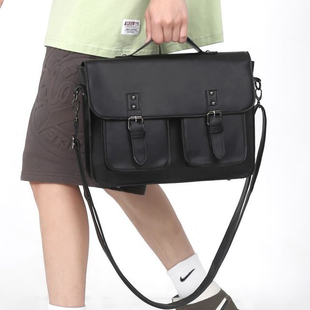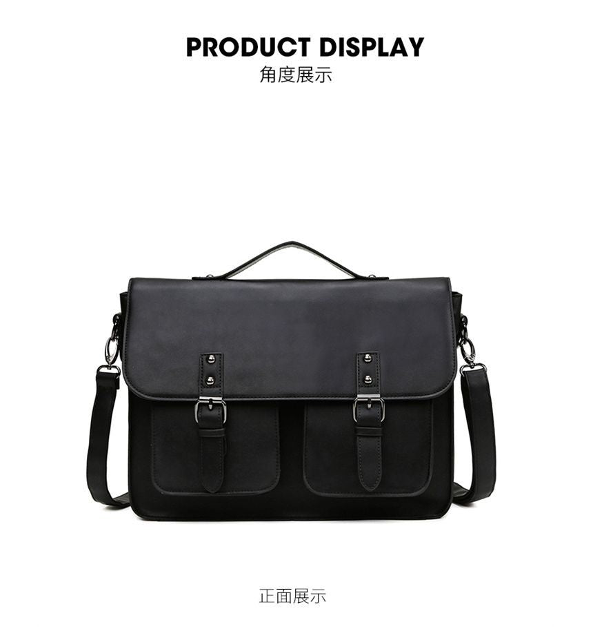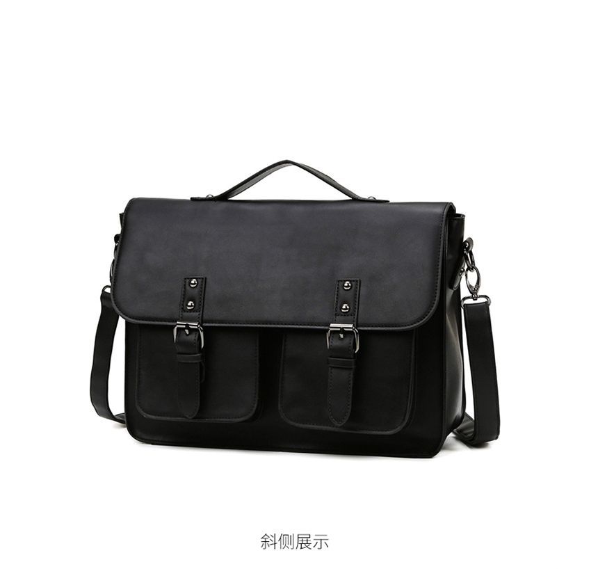Multi-Pocket Faux Leather Satchel