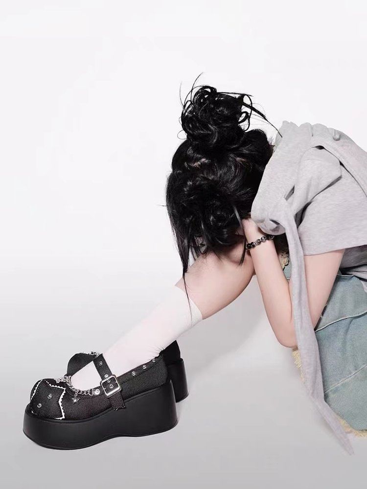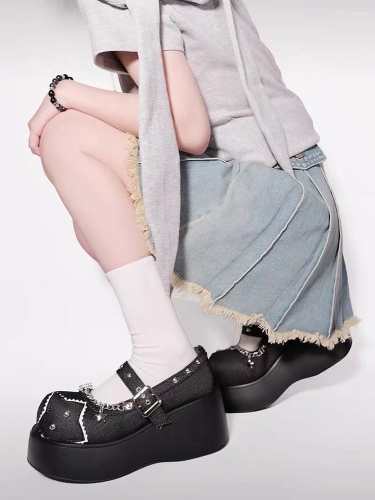 Platform Star Applique Chain Mary Jane Pumps