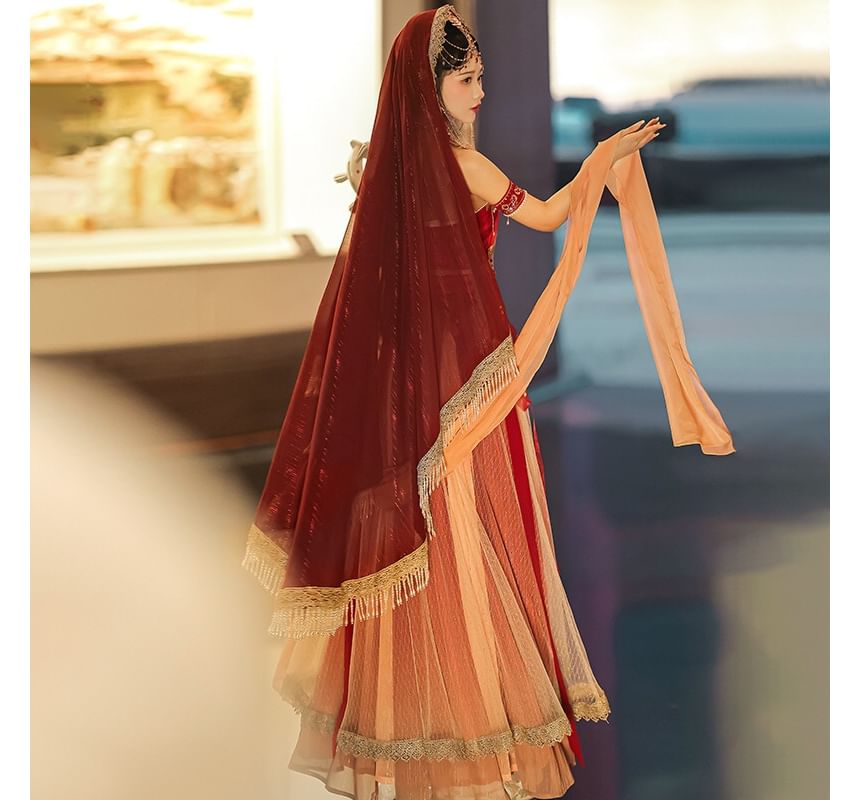 Every product is unique, just like you. If you're looking for a product that fits the mold of your life, the Set: Lolita Strapless Embroidered Crop Top + High Rise Midi A-Line Skirt + Arm Let + Scarf + Veil is for you.