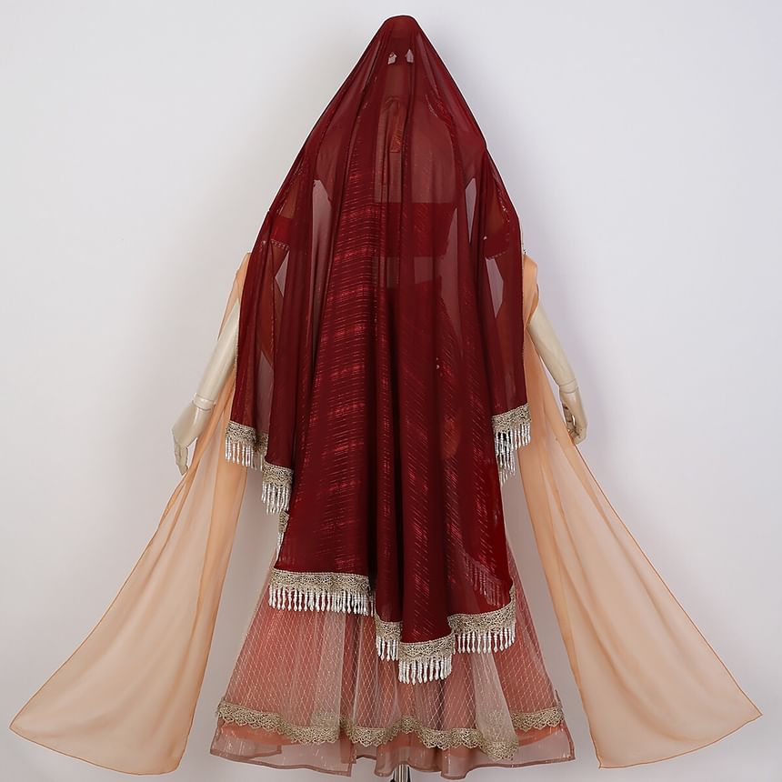 Set: Strapless Embroidered Crop Top + High Rise Midi A-Line Skirt + Arm Let + Scarf + Veil