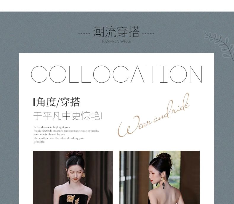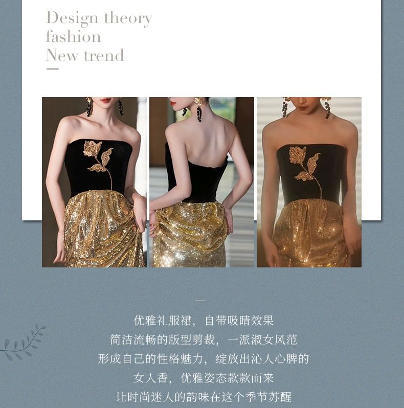 Strapless Floral Embroidered Sequin Mermaid Evening Gown