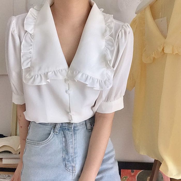 Kawaii frill collar blouse adds a touch of sweetness to any outfit. Perfect for a cute and feminine look.