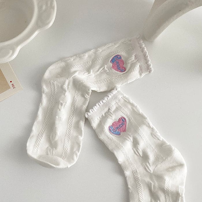 Sweet Heart Embroidery Socks