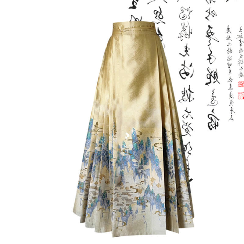 Vintage Buckle Tassel Shirt Yellow Pleated Skirt